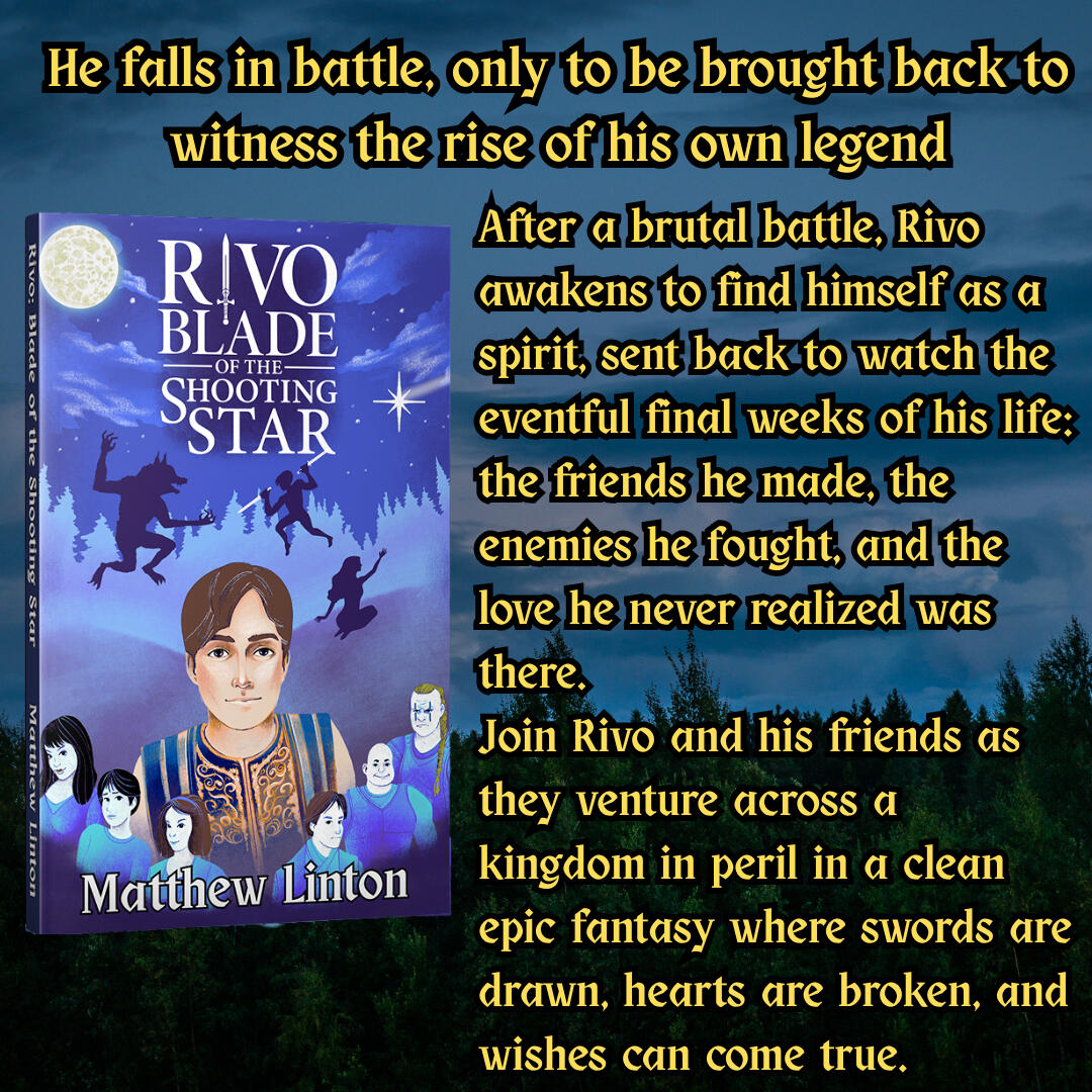 A mysterious force sends him back in time to witness his own rise and fall over the eventful final weeks of his life: the friends he made, the enemies he fought, and the love he never realized was there.Will Rivo be able to win his life back, along with the heart of the one who loved him in secret?Join Rivo and his friends as they travel through a kingdom under threat. In a clean epic fantasy where swords are drawn, hearts are broken, and wishes can come true.